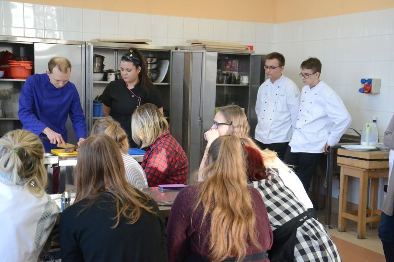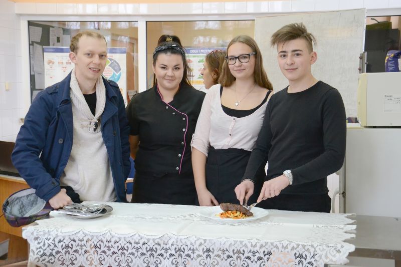 W dniu 20 listopada uczniowie klasy II ja mieli przyjemność wspólnego gotowania z Patrykiem Wróblewskim, który jest szefem kuchni restauracji „ La Calma” w Lesznie. Pod okiem pana Patryka powstały różne potrawy: stek wołowy na bazie rostbefu, ozorki wieprzowe w sosie paprykowym oraz frytki z warzyw. Uczniowie mieli okazje poznać tajniki przygotowania tych niezwykłych potraw. Po trudach gotowania delektowaliśmy się efektami pracy. Była to kulinarna podróż przez krainę nowych doznań, smaków i zapachów.