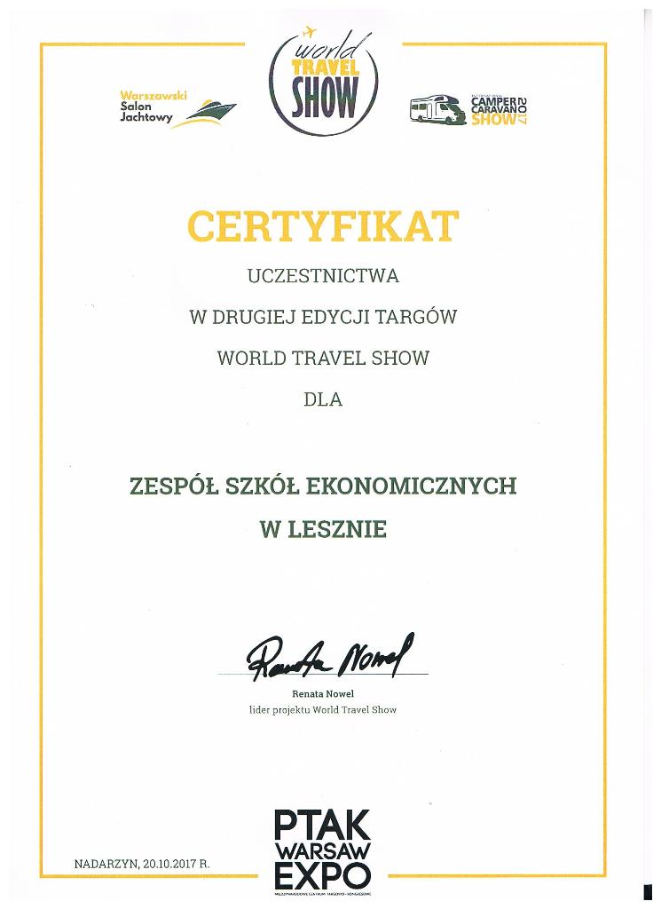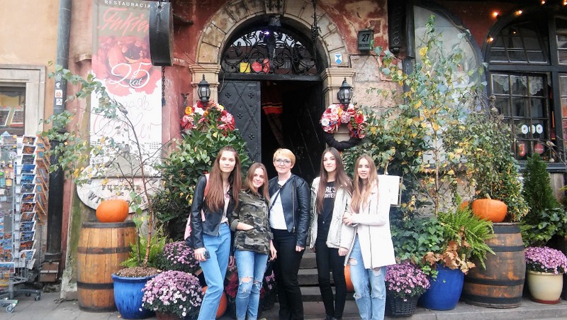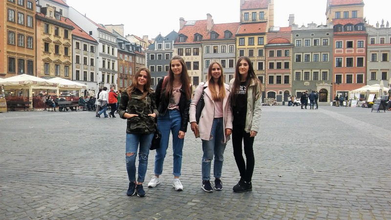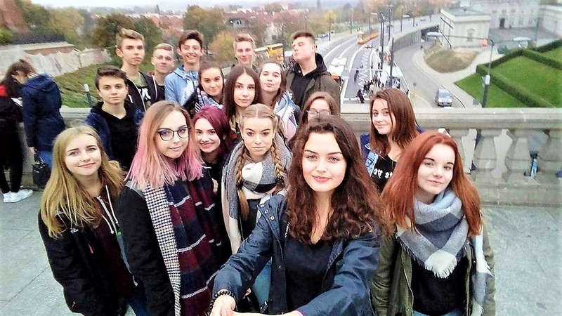 Wczesnym, a nawet bardzo wczesnym rankiem, wyruszyliśmy spod naszej szkoły w stronę Warszawy.Nie obyło się oczywiście bez małych problemów – nasza koleżanka z bursy zaspała 😉 ale wróżyło to tylko najbardziej udany wyjazd z możliwych. Wśród mgieł i mżawki mknęliśmy na wschód, ku zawodowej przygodzie. O czasie dotarliśmy do centrum wystawowego w Nadarzynie i po załatwieniu wszelkich formalności weszliśmy do pawilonu wystawienniczego World Travel Show. Jedną z atrakcji było spotkanie z Wojciechem Cejrowskim – któż nie zna tej barwnej postaci? Z wielką przyjemnością wysłuchaliśmy jego opowieści. Niektórym szczęściarzom udało się również spotkać z Aleksandrem Dobą – człowiekiem, który z pasją oddaje się realizacji swoich marzeń – zamiast chodzić, pływa kajakiem 😉 Odwiedziliśmy wiele ciekawych stoisk, mieliśmy okazję spróbować dań kilku różnych kuchni oraz pomarzyć o podróżach luksusowym camperem czy jachtem, co wzbudziło nasz szczególny zachwyt. Grupa okazała się być bardzo zdyscyplinowana, więc mieliśmy jeszcze czas na spacer po Starówce. Wielu z nas było już w Warszawie, ale z przyjemnością odwiedziliśmy stare kąty: Plac Zamkowy – tam pozdrowiliśmy Zygmunta, podziwialiśmy urokliwe uliczki i Barbakan; później Krakowskim Przedmieściem udaliśmy się w stronę  ulicy Nowy Świat podziwiając po drodze Pałac Prezydencki, kościoły, pomnik Kopernika, budynki Uniwersytetu Warszawskiego i ASP oraz reprezentacyjne hotele: Bristol i zyskujący nowe oblicze Europejski, posłuchaliśmy również Chopina przysiadając na ławeczce. Przyspieszając nieco kroku dotarliśmy na Plac Defilad – punkt obowiązkowy wielu wycieczek. Podczas przechadzki kilka osób było świadkami przejazdu kolumny BOR z Prezydentem Andrzejem Dudą, a niektórzy wystąpili nawet w telewizji 🙂