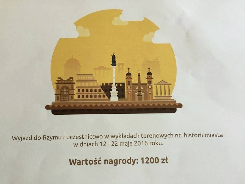 Zwyciężyła Anna Szczefanowicz! Ania napisała ponad 120 sentencji, dzięki czemu zdobyła nagrodę główną – wyjazd do Rzymu, organizowaną przez Uniwersytet Adama Mickiewicza w Poznaniu. W ciągu dziesięciu dni Ania pozna historię Wiecznego Miasta, najważniejsze zabytki oraz będzie uczestniczyć w projektach badawczych. Gratulujemy serdecznie Ani i życzymy udanego wyjazdu.