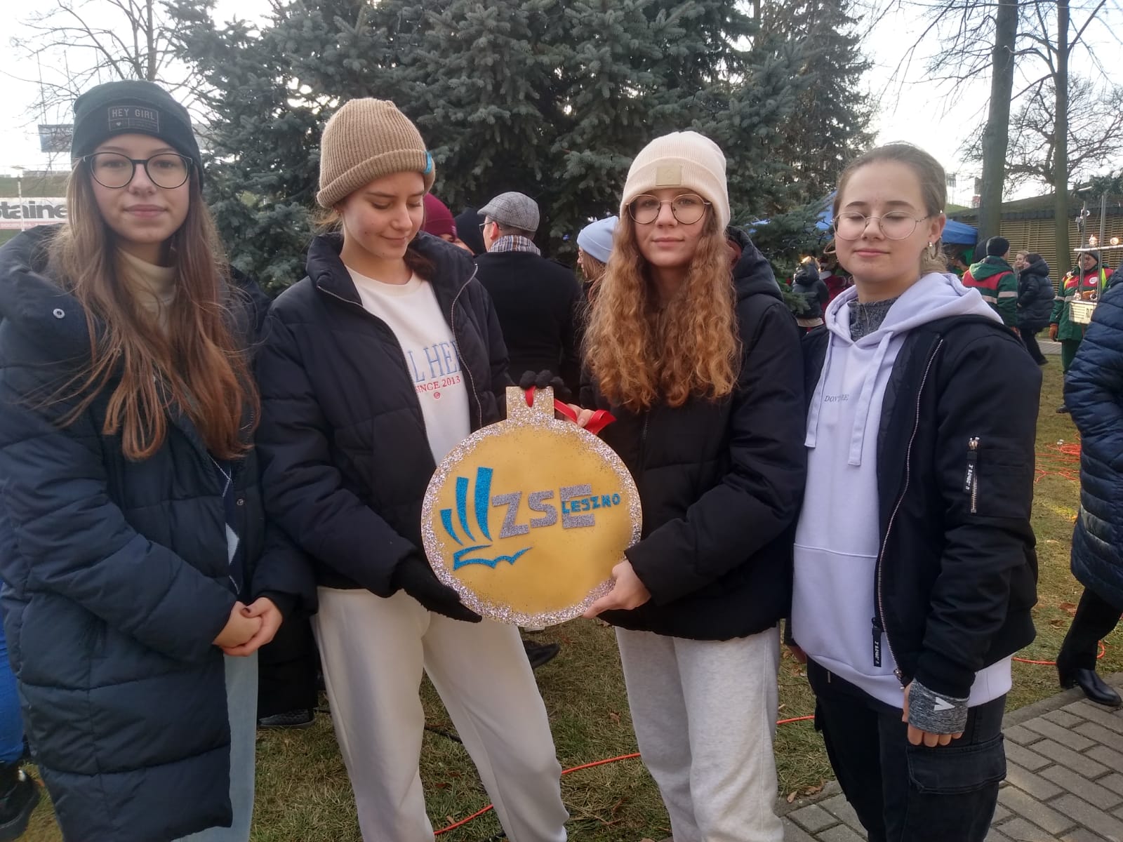 Dnia 3 grudnia 2021 roku uczniowie klasy 1j, 2j oraz 2la zawiesili przygotowane przez siebie bombki na olbrzymiej choince miejskiej przy stadionie w Lesznie. Anna Kapała Anna Machowska Monika Raczkowska Dominika Grycz