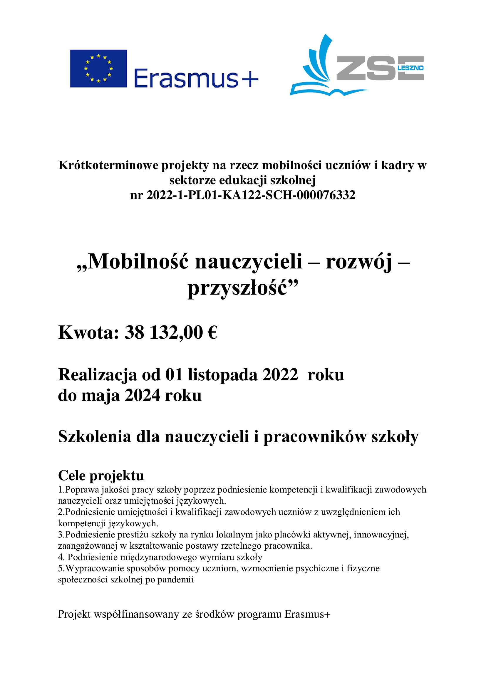 Mobilność nauczycieli – rozwój – przyszłość 2022 – 2024