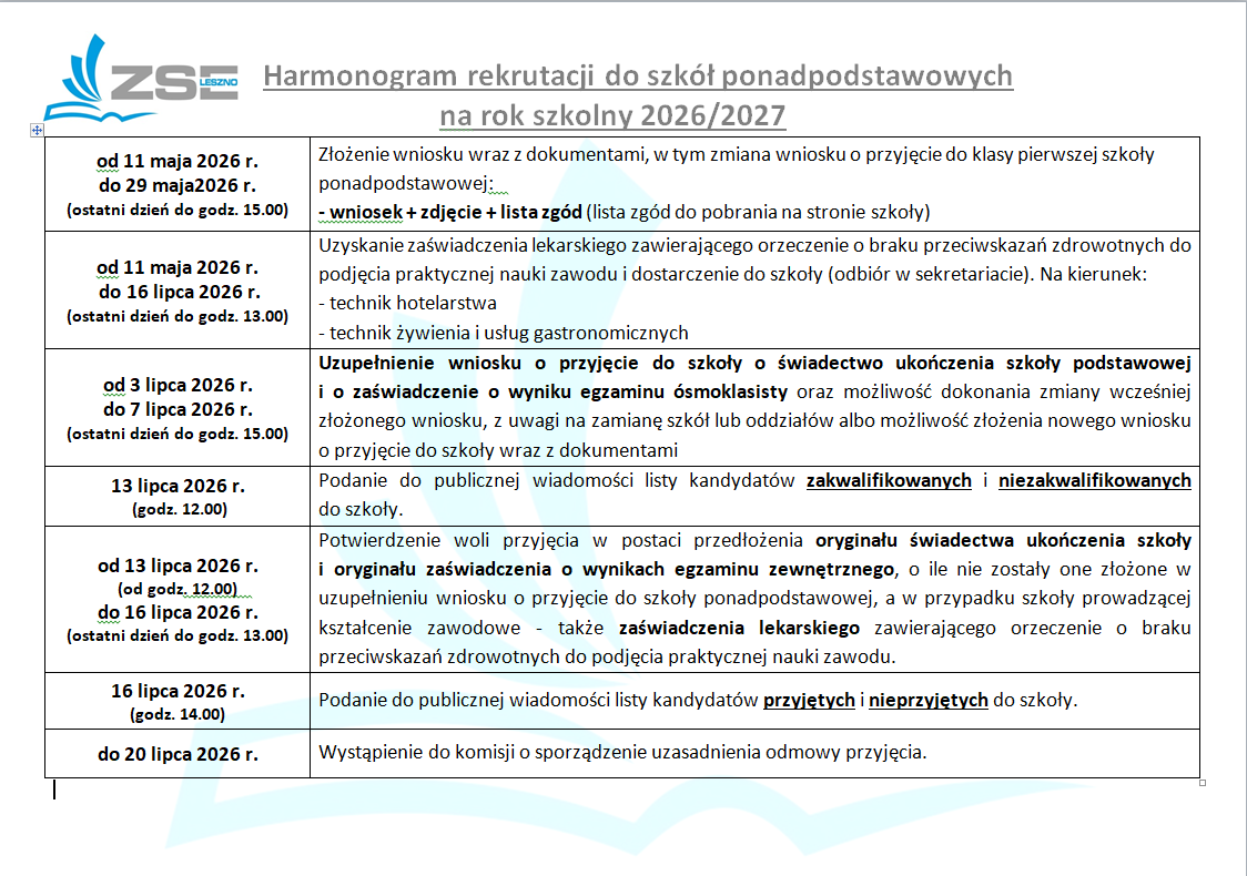 Harmonogram rekrutacji 2026/2027