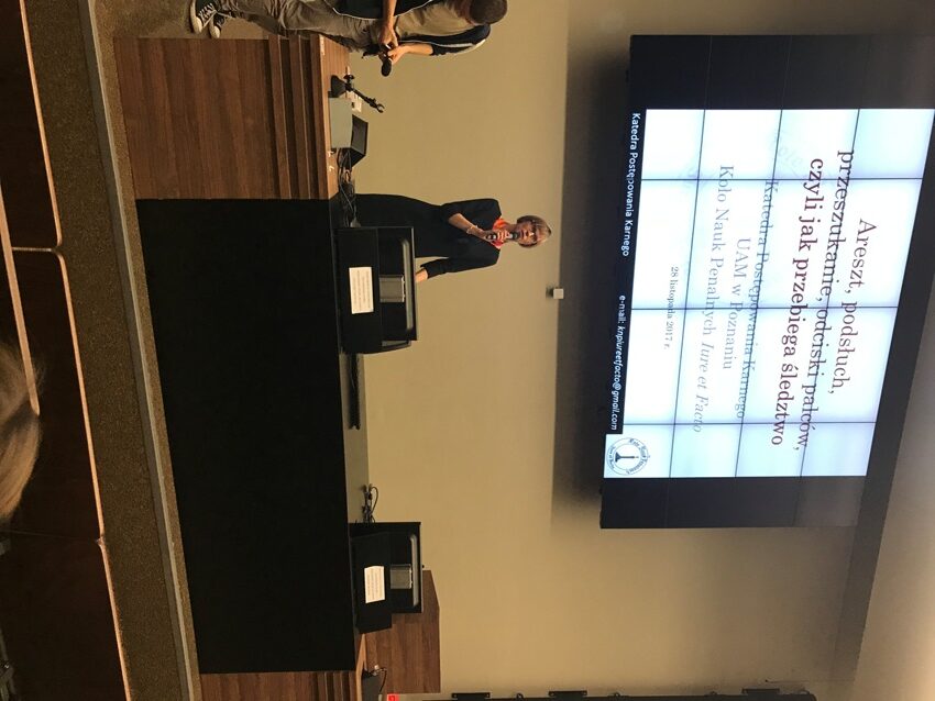 W dniu 28.11.17 pierwszy raz uczniowie ZSE – uczennice klasy 2h – uczestniczyły w wykładzie organizowanym przez Wydział Prawa i Administracji Uniwersytetu Adama Mickiewicza w Poznaniu. Wykład pt.”Areszt, podsłuch, przeszukanie, odciski palców czyli jak przebiega śledztwo?” przygotowany został przez członków Koła Nauk Penalnych Iure et Facto oraz dr Piotra Karlika.